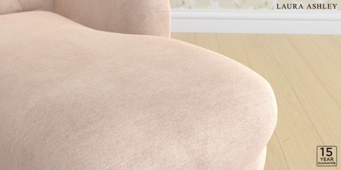 6.12.13 Buy Gloucester Button Back by Laura Ashley Chaise Longue Right Hand Orla Chalk Pink Low Brass Castor - Teak from the Next UK online shop Click here to use our accessible website