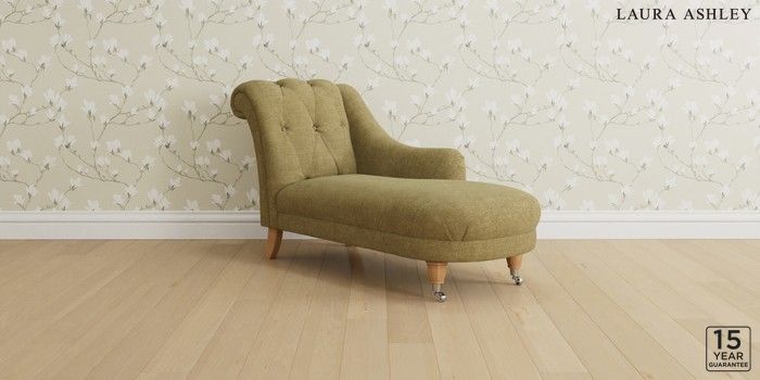 6.12.1 Buy Gloucester Button Back by Laura Ashley Chaise Longue Right Hand Orla Gold Natural Low Chrome Castor - Light Oak from the Next UK online shop Click here to use our accessible website