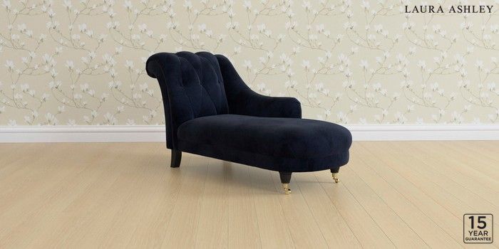 6.12.1 Buy Gloucester Button Back by Laura Ashley Chaise Longue Right Hand Orla Midnight Navy Low Brass Castor - Black from the Next UK online shop Click here to use our accessible website