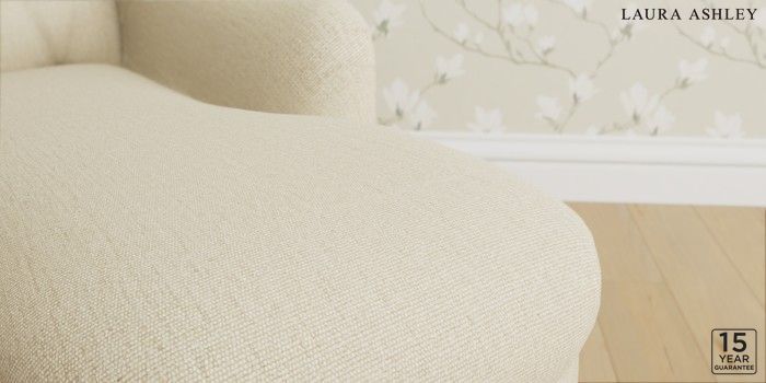 6.12.1 Buy Gloucester Button Back by Laura Ashley Chaise Longue Right Hand Orla Oyster Natural Low Chrome Castor - Teak from the Next UK online shop Click here to use our accessible website
