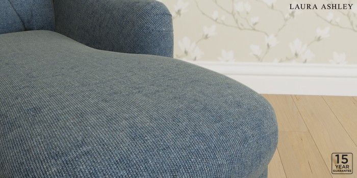 6.12.1 Buy Gloucester Button Back by Laura Ashley Chaise Longue Right Hand Orla Seaspray Blue Low Brass Castor - Chestnut from the Next UK online shop Click here to use our accessible website