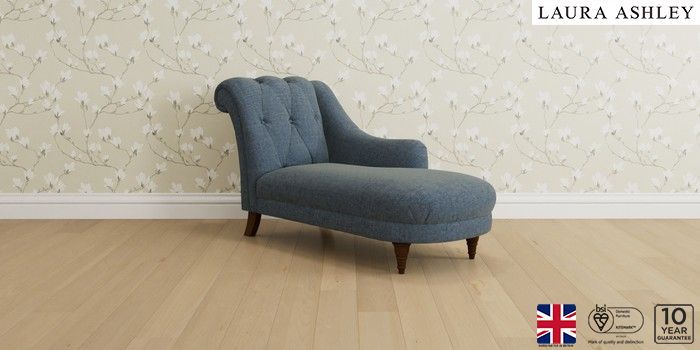 6.12.1 Buy Gloucester Button Back by Laura Ashley Chaise Longue Right Hand Orla Seaspray Blue Low Turned - Teak from the Next UK online shop Click here to use our accessible website