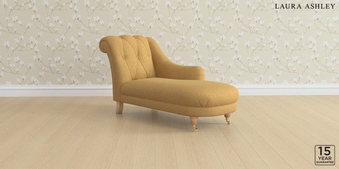 6.12.1 Buy Gloucester Button Back by Laura Ashley Chaise Longue Right Hand Peyton Ochre Yellow Low Brass Castor - Light Oak from the Next UK online shop Click here to use our accessible website