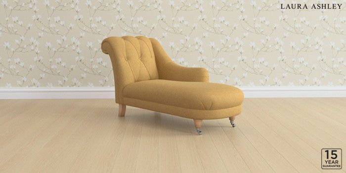 6.12.1 Buy Gloucester Button Back by Laura Ashley Chaise Longue Right Hand Peyton Ochre Yellow Low Chrome Castor - Light Oak from the Next UK online shop Click here to use our accessible website
