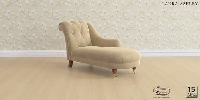 6.12.1 Buy Gloucester Button Back by Laura Ashley Chaise Longue Right Hand Peyton Sable Natural Low Brass Castor - Teak from the Next UK online shop Click here to use our accessible website