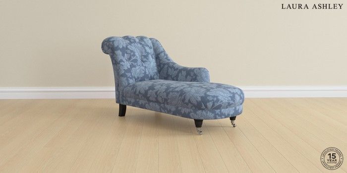 7.2.6 Buy Gloucester Button Back by Laura Ashley Chaise Longue Right Hand Tamara Dusky Seaspray Blue Low Chrome Castor - Black from the Next UK online shop Click here to use our accessible website