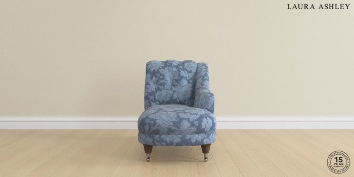 6.12.1 Buy Gloucester Button Back by Laura Ashley Chaise Longue Right Hand Tamara Dusky Seaspray Blue Low Chrome Castor - Chestnut from the Next UK online shop Click here to use our accessible website
