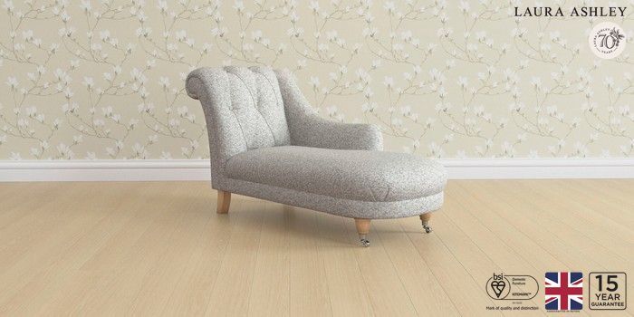 6.12.1 Buy Gloucester Button Back by Laura Ashley Chaise Longue Right Hand Tichwell Steel Grey Low Chrome Castor - Light Oak from the Next UK online shop Click here to use our accessible website