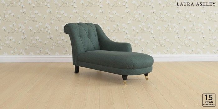 6.12.1 Buy Gloucester Button Back by Laura Ashley Chaise Longue Right Hand Wooton Forest Green Low Brass Castor - Black from the Next UK online shop Click here to use our accessible website
