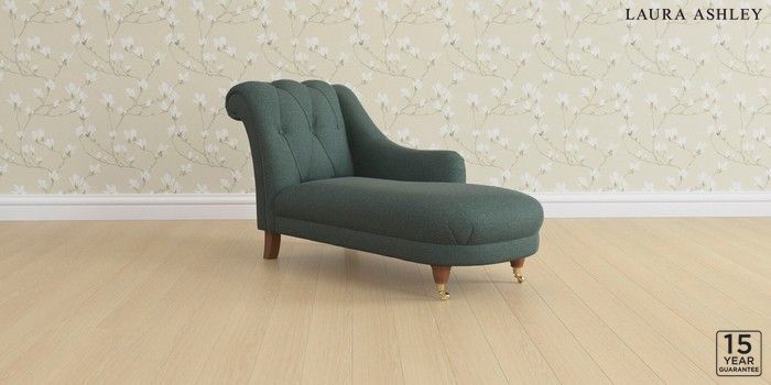 6.12.1 Buy Gloucester Button Back by Laura Ashley Chaise Longue Right Hand Wooton Forest Green Low Brass Castor - Teak from the Next UK online shop Click here to use our accessible website