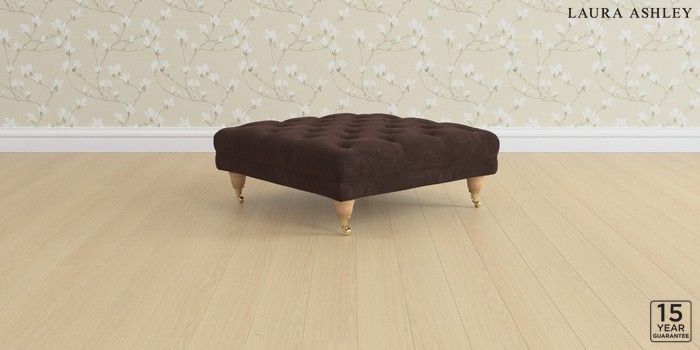6.12.1 Buy Gloucester Button Back by Laura Ashley Extra Large Footstool Alwyn Velvet Chocolate Brown Low Brass Castor - Light Oak from the Next UK online shop Click here to use our accessible website