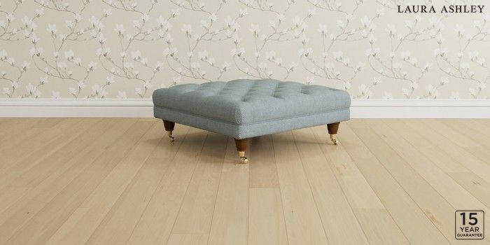 6.12.1 Buy Gloucester Button Back by Laura Ashley Extra Large Footstool Anneliese Seaspray Blue Low Brass Castor - Teak from the Next UK online shop Click here to use our accessible website