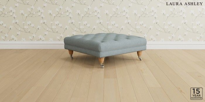6.12.1 Buy Gloucester Button Back by Laura Ashley Extra Large Footstool Anneliese Seaspray Blue Low Chrome Castor - Light Oak from the Next UK online shop Click here to use our accessible website