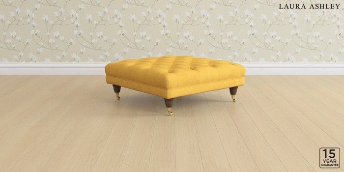 6.12.1 Buy Gloucester Button Back by Laura Ashley Extra Large Footstool Bainton Ochre Yellow Low Brass Castor - Chestnut from the Next UK online shop Click here to use our accessible website