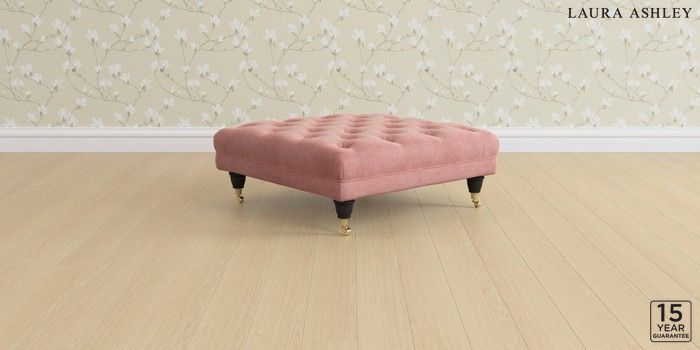 6.12.1 Buy Gloucester Button Back by Laura Ashley Extra Large Footstool Bainton Old Rose Pink Low Brass Castor - Black from the Next UK online shop Click here to use our accessible website