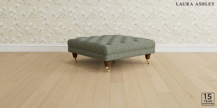 6.12.1 Buy Gloucester Button Back by Laura Ashley Extra Large Footstool Bainton Sage Green Low Brass Castor - Teak from the Next UK online shop Click here to use our accessible website