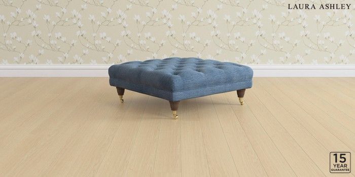 6.12.1 Buy Gloucester Button Back by Laura Ashley Extra Large Footstool Edwin Chenille Seaspray Blue Low Brass Castor - Chestnut from the Next UK online shop Click here to use our accessible website
