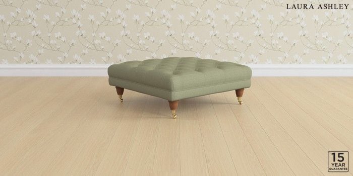 6.12.1 Buy Gloucester Button Back by Laura Ashley Extra Large Footstool Edwin Herringbone Hedgerow Green Low Brass Castor - Teak from the Next UK online shop Click here to use our accessible website