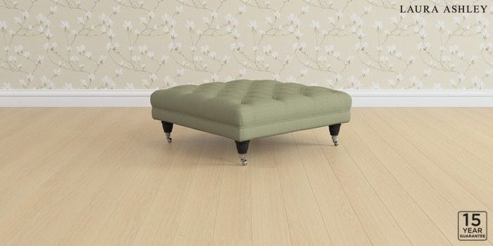 6.12.1 Buy Gloucester Button Back by Laura Ashley Extra Large Footstool Edwin Herringbone Hedgerow Green Low Chrome Castor - Black from the Next UK online shop Click here to use our accessible website