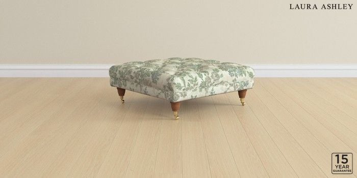 6.12.1 Buy Gloucester Button Back by Laura Ashley Extra Large Footstool Ellerby Seaspray Blue Low Brass Castor - Teak from the Next UK online shop Click here to use our accessible website