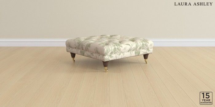 6.12.1 Buy Gloucester Button Back by Laura Ashley Extra Large Footstool Gosford Weave Sage Green Low Brass Castor - Chestnut from the Next UK online shop Click here to use our accessible website