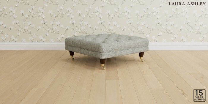 6.12.1 Buy Gloucester Button Back by Laura Ashley Extra Large Footstool Harley Dove Grey Low Brass Castor - Chestnut from the Next UK online shop Click here to use our accessible website