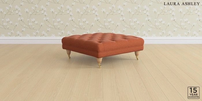 6.12.1 Buy Gloucester Button Back by Laura Ashley Extra Large Footstool Harley Terracotta Orange Low Brass Castor - Light Oak from the Next UK online shop Click here to use our accessible website