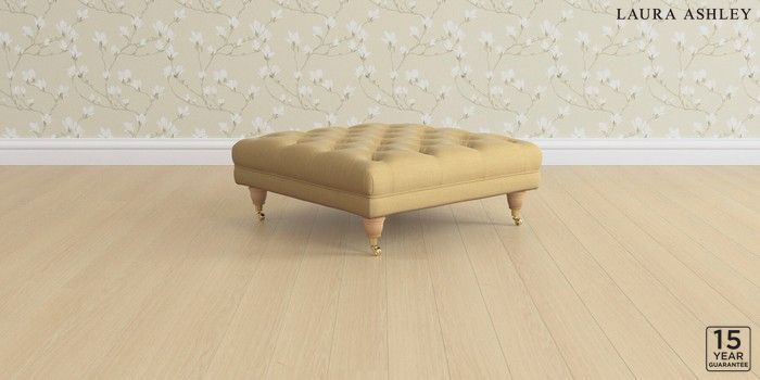 6.12.1 Buy Gloucester Button Back by Laura Ashley Extra Large Footstool Kinsham Ochre Yellow Low Brass Castor - Light Oak from the Next UK online shop Click here to use our accessible website