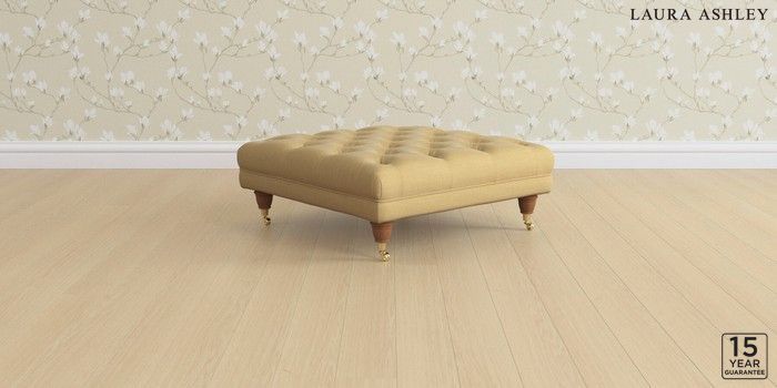 6.12.1 Buy Gloucester Button Back by Laura Ashley Extra Large Footstool Kinsham Ochre Yellow Low Brass Castor - Teak from the Next UK online shop Click here to use our accessible website