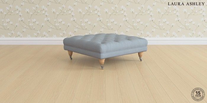 6.12.1 Buy Gloucester Button Back by Laura Ashley Extra Large Footstool Kinsham Seaspray Blue Low Chrome Castor - Light Oak from the Next UK online shop Click here to use our accessible website