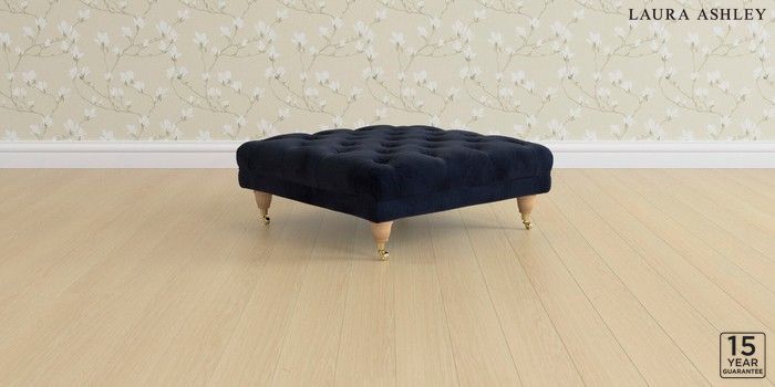 6.12.1 Buy Gloucester Button Back by Laura Ashley Extra Large Footstool Orla Midnight Navy Low Brass Castor - Light Oak from the Next UK online shop Click here to use our accessible website