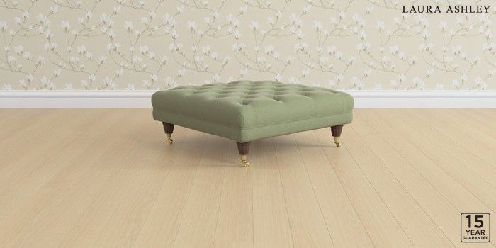6.12.1 Buy Gloucester Button Back by Laura Ashley Extra Large Footstool Peyton Hedgerow Green Low Brass Castor - Chestnut from the Next UK online shop Click here to use our accessible website