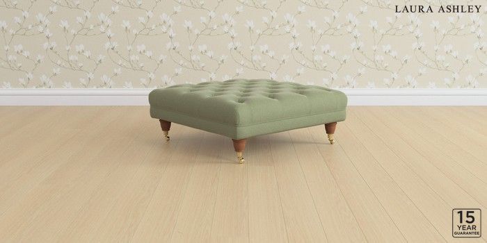 6.12.1 Buy Gloucester Button Back by Laura Ashley Extra Large Footstool Peyton Hedgerow Green Low Brass Castor - Teak from the Next UK online shop Click here to use our accessible website