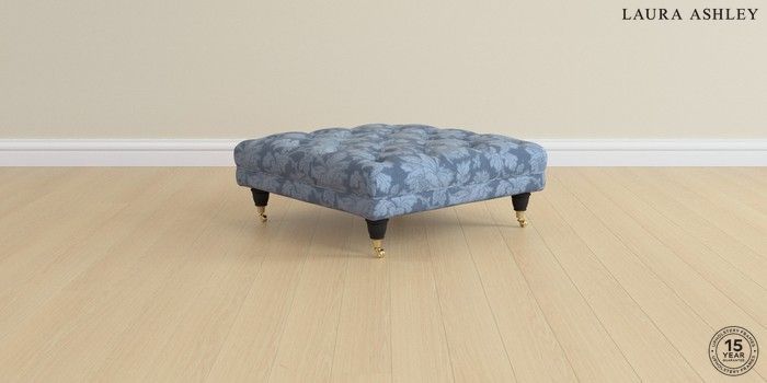 6.12.1 Buy Gloucester Button Back by Laura Ashley Extra Large Footstool Tamara Dusky Seaspray Blue Low Brass Castor - Black from the Next UK online shop Click here to use our accessible website