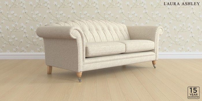 6.12.1 Buy Gloucester Button Back by Laura Ashley 3 Seater Sofa Borwick Natural Low Chrome Castor - Light Oak from the Next UK online shop Click here to use our accessible website