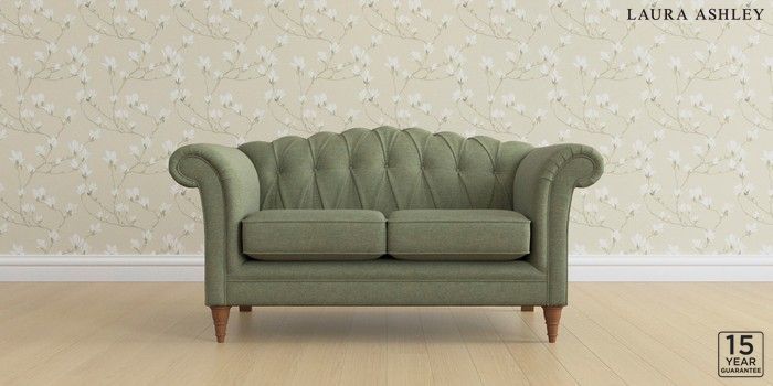 6.12.1 Buy Gloucester Button Back by Laura Ashley 2 Seater Small Sofa Harley Moss Green Low Turned - Teak from the Next UK online shop Click here to use our accessible website