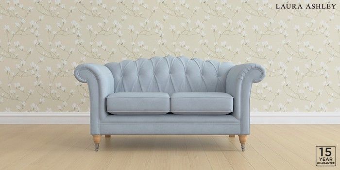 6.12.1 Buy Gloucester Button Back by Laura Ashley 2 Seater Small Sofa Ailsworth Newport Blue Low Chrome Castor - Light Oak from the Next UK online shop Click here to use our accessible website