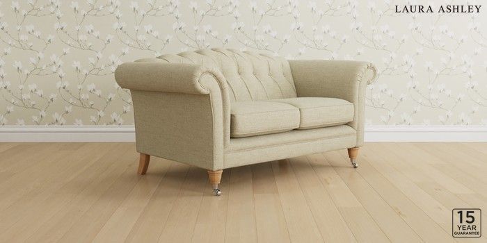 6.12.1 Buy Gloucester Button Back by Laura Ashley 2 Seater Small Sofa Harley Natural Low Chrome Castor - Light Oak from the Next UK online shop Click here to use our accessible website