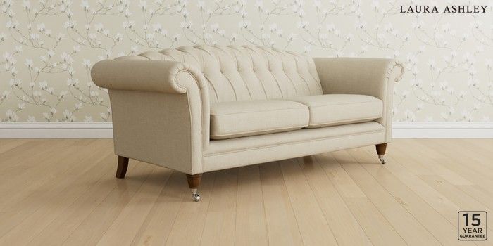 6.12.1 Buy Gloucester Button Back by Laura Ashley 3 Seater Sofa Wooton Natural Low Chrome Castor - Teak from the Next UK online shop Click here to use our accessible website