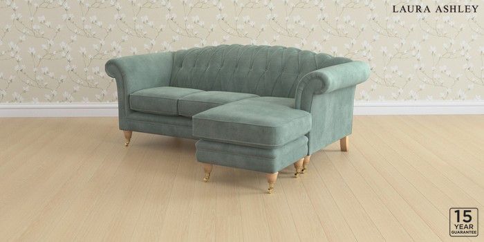 6.12.13 Buy Gloucester Button Back by Laura Ashley Medium Sofa Chaise - Universal Ailsworth Fern Green Low Brass Castor - Light Oak from the Next UK online shop Click here to use our accessible website