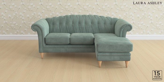 6.12.13 Buy Gloucester Button Back by Laura Ashley Medium Sofa Chaise - Universal Ailsworth Fern Green Low Turned - Light Oak from the Next UK online shop Click here to use our accessible website