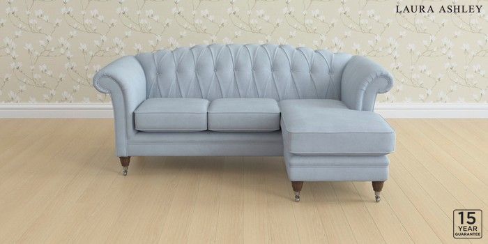 6.12.13 Buy Gloucester Button Back by Laura Ashley Medium Sofa Chaise - Universal Ailsworth Newport Blue Low Chrome Castor - Chestnut from the Next UK online shop Click here to use our accessible website