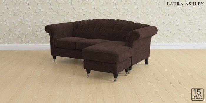 6.12.13 Buy Gloucester Button Back by Laura Ashley Medium Sofa Chaise - Universal Alwyn Velvet Chocolate Brown Low Chrome Castor - Black from the Next UK online shop Click here to use our accessible website