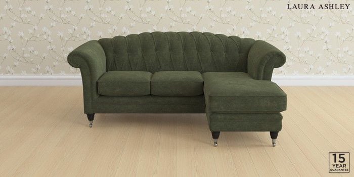 6.12.13 Buy Gloucester Button Back by Laura Ashley Medium Sofa Chaise - Universal Alwyn Velvet Ivy Green Low Chrome Castor - Black from the Next UK online shop Click here to use our accessible website