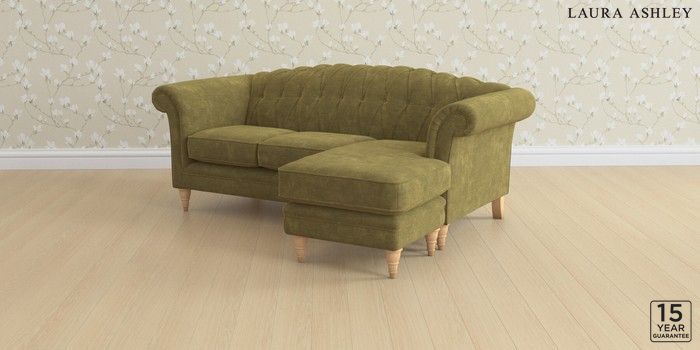 6.12.1 Buy Gloucester Button Back by Laura Ashley Medium Sofa Chaise - Universal Alwyn Velvet Olive Green Low Turned - Light Oak from the Next UK online shop Click here to use our accessible website