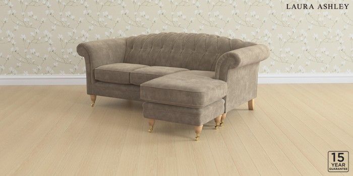 7.0.3 Buy Gloucester Button Back by Laura Ashley Medium Sofa Chaise - Universal Alwyn Velvet Truffle Natural Low Brass Castor - Light Oak from the Next UK online shop Click here to use our accessible website