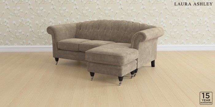 6.12.13 Buy Gloucester Button Back by Laura Ashley Medium Sofa Chaise - Universal Alwyn Velvet Truffle Natural Low Chrome Castor - Black from the Next UK online shop Click here to use our accessible website