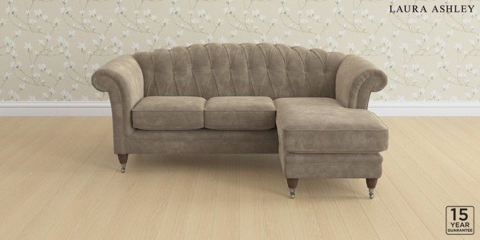 6.12.13 Buy Gloucester Button Back by Laura Ashley Medium Sofa Chaise - Universal Alwyn Velvet Truffle Natural Low Chrome Castor - Chestnut from the Next UK online shop Click here to use our accessible website