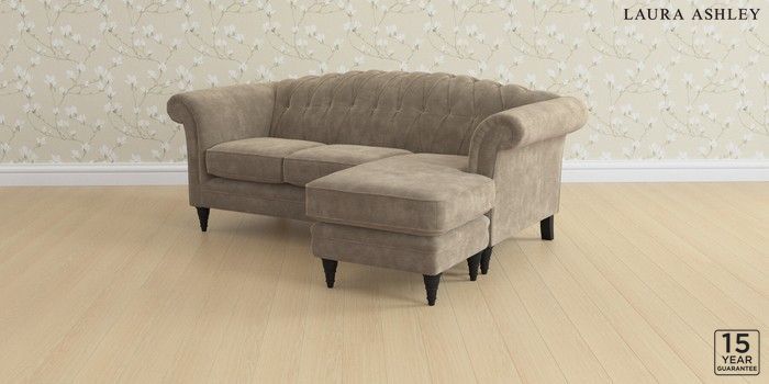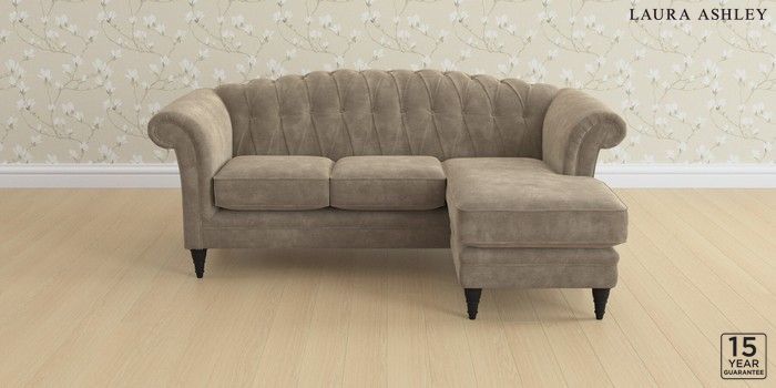 6.12.13 Buy Gloucester Button Back by Laura Ashley Medium Sofa Chaise - Universal Alwyn Velvet Truffle Natural Low Turned - Black from the Next UK online shop Click here to use our accessible website