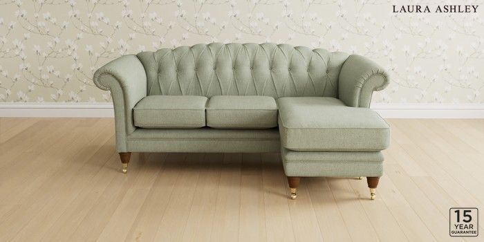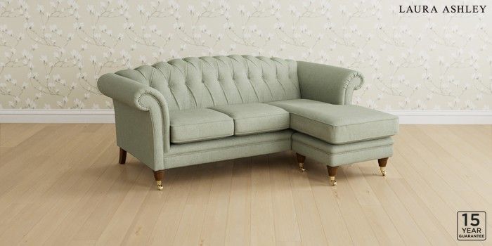 6.12.1 Buy Gloucester Button Back by Laura Ashley Medium Sofa Chaise - Universal Anneliese Sage Green Low Brass Castor - Teak from the Next UK online shop Click here to use our accessible website